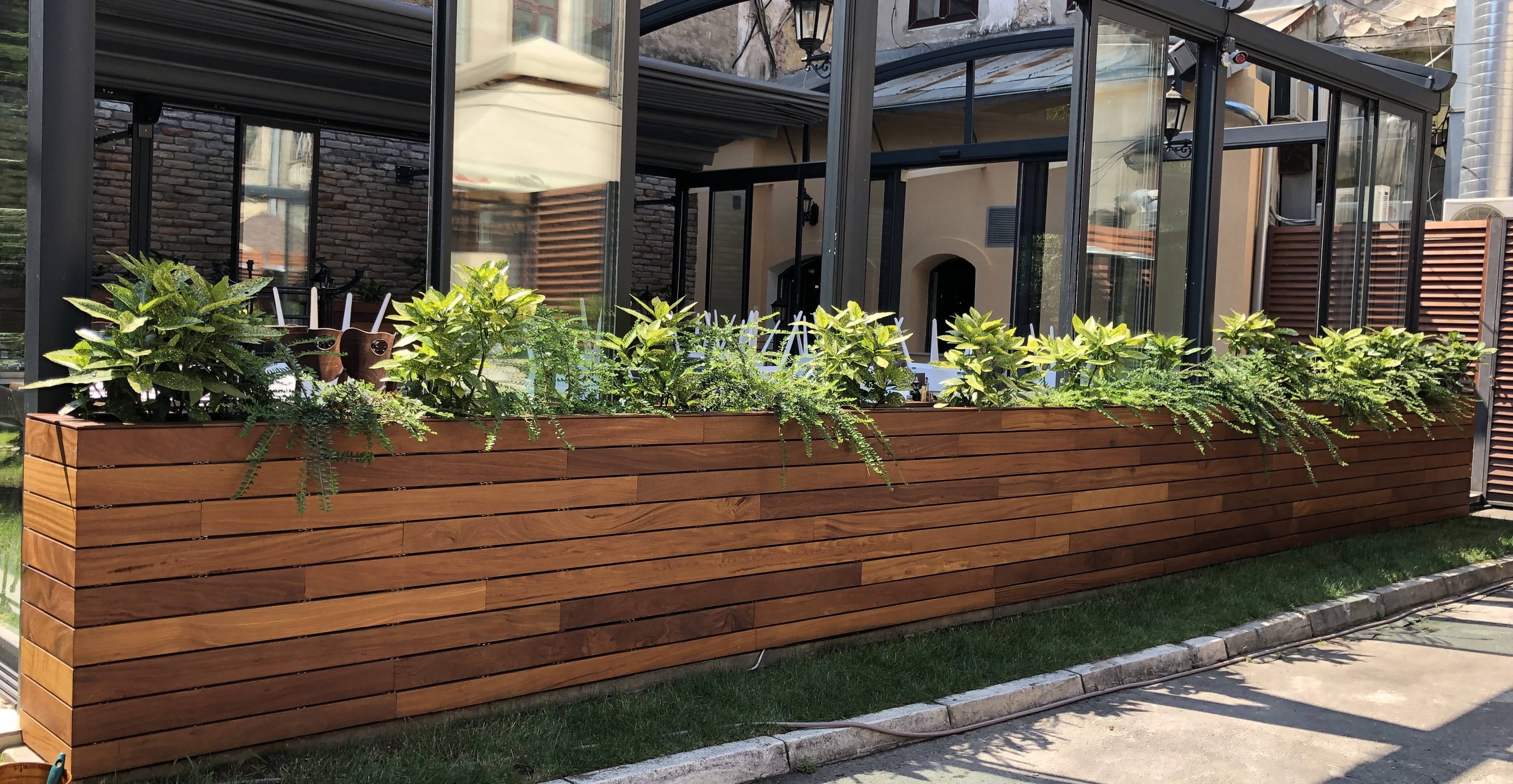 Cumaru deking na inox klipsama - restoran Via del Gusto